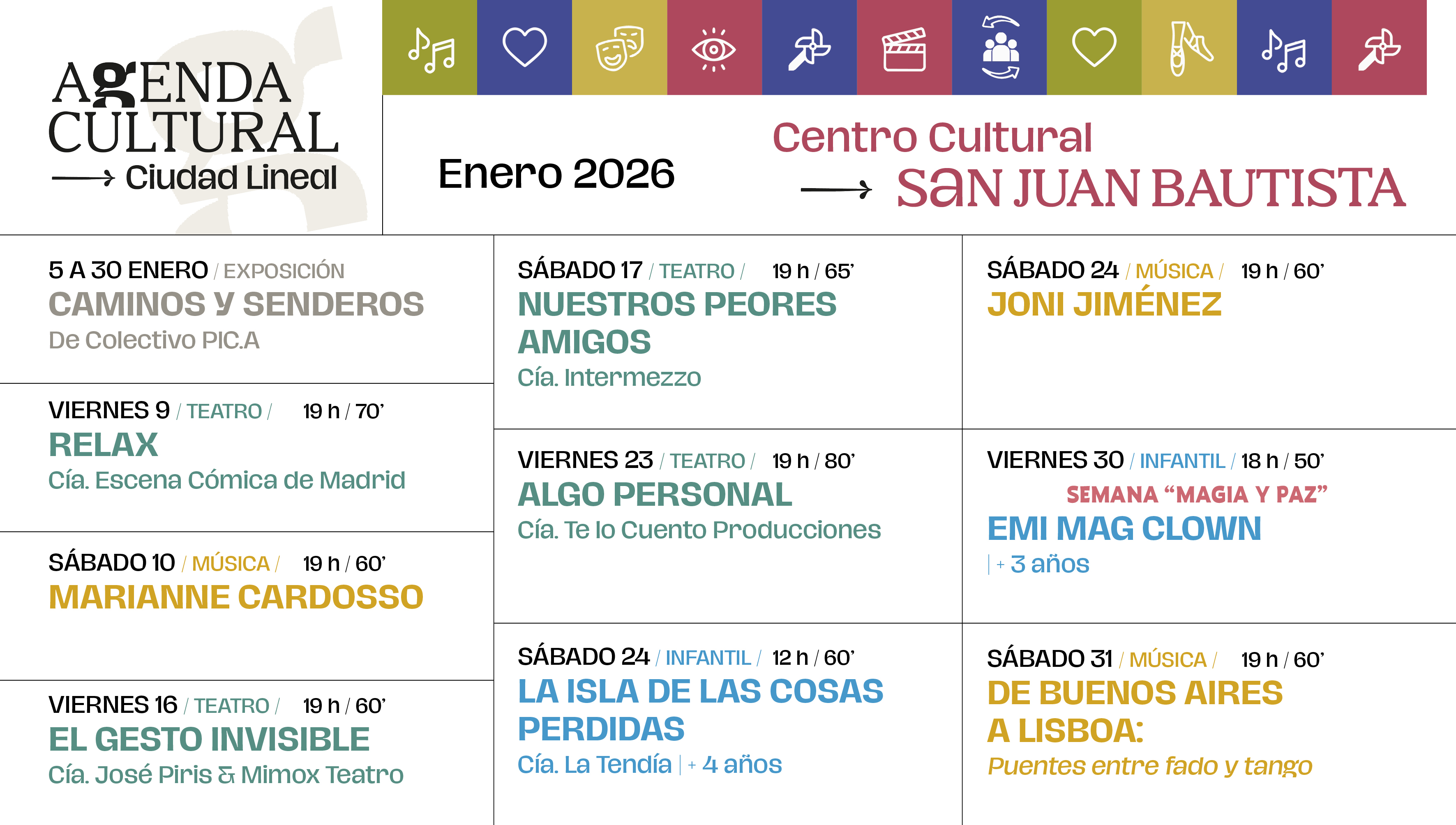 - Exposición "Caminos y senderos". Del lunes 5 de enero de 2026 al jueves 29 de enero de 2026