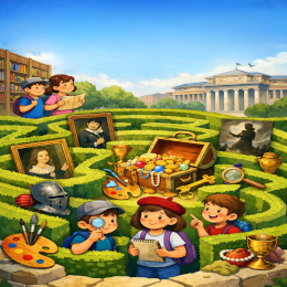 Un divertido recorrido virtual por el Museo del Prado. Un auténtico laberinto de obras de arte, que recorreremos en la biblioteca mostrando alguno de sus tesoros, para que los pequeños se animen a visitarlo con sus padres, y descubran así el tesoro de su patrimonio artístico.