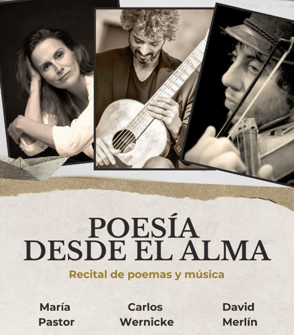 A través de una cuidadosa selección de poemas interpretados por la actriz María Pastor y acompañada por dos virtuosos músicos: el guitarrista Carlos Wernicke y el violinista David Merlín, nos invitan a escuchar y vibrar con las palabras de prestigiosos poetas. En este recital disfrutaremos y nos sentiremos parte de un encuentro entre la música y poesía.