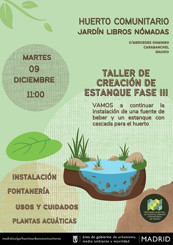 Taller de Creación de estanque en el huerto Libros Nómadas: martes 09 de diciembre a las 11:00 h www.madrid.es 01/09/2025 09/12/2025